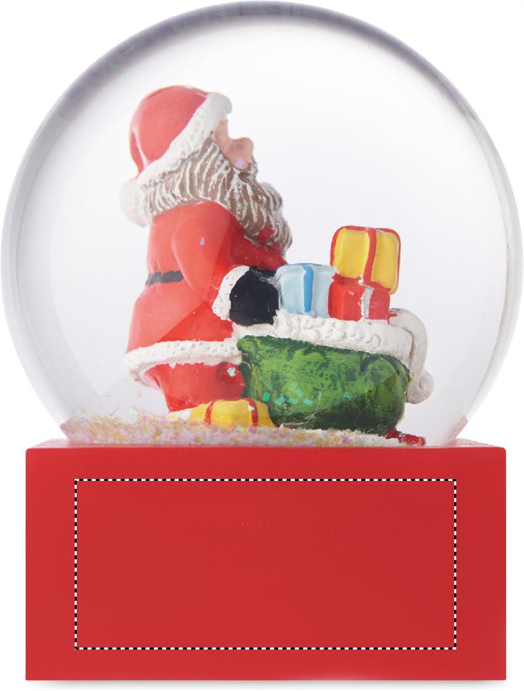 Jouluinen lasinen lumipallokoriste, jossa on polyresiinipohja.