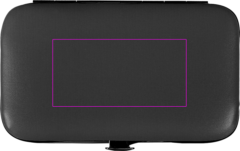 Manikyyrisetti PVC-kotelossa, jossa metallirunko sisältää kynsisakset, kynsiviilan, kynsileikkurit ja pinsetit. Painamme logosi koteloon.