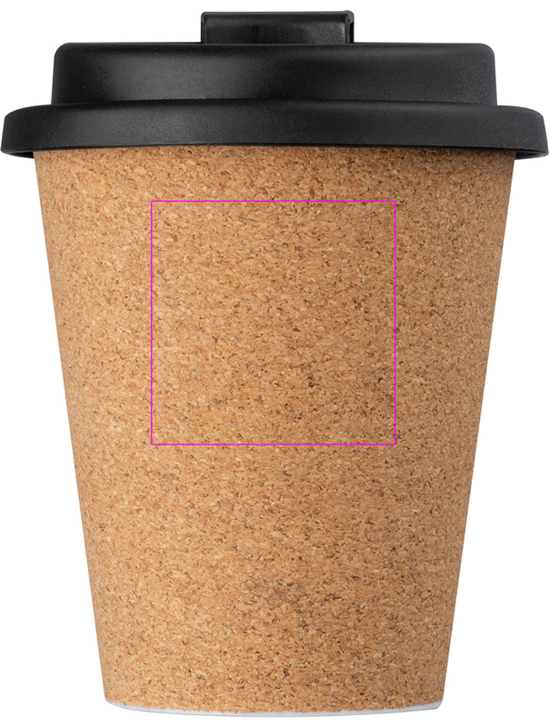 Vuotamaton juomamuki korkkipinnoitteella, lukittava suukappale ja tilavuus 350 ml. Logosi kaiverretaan mukiin.