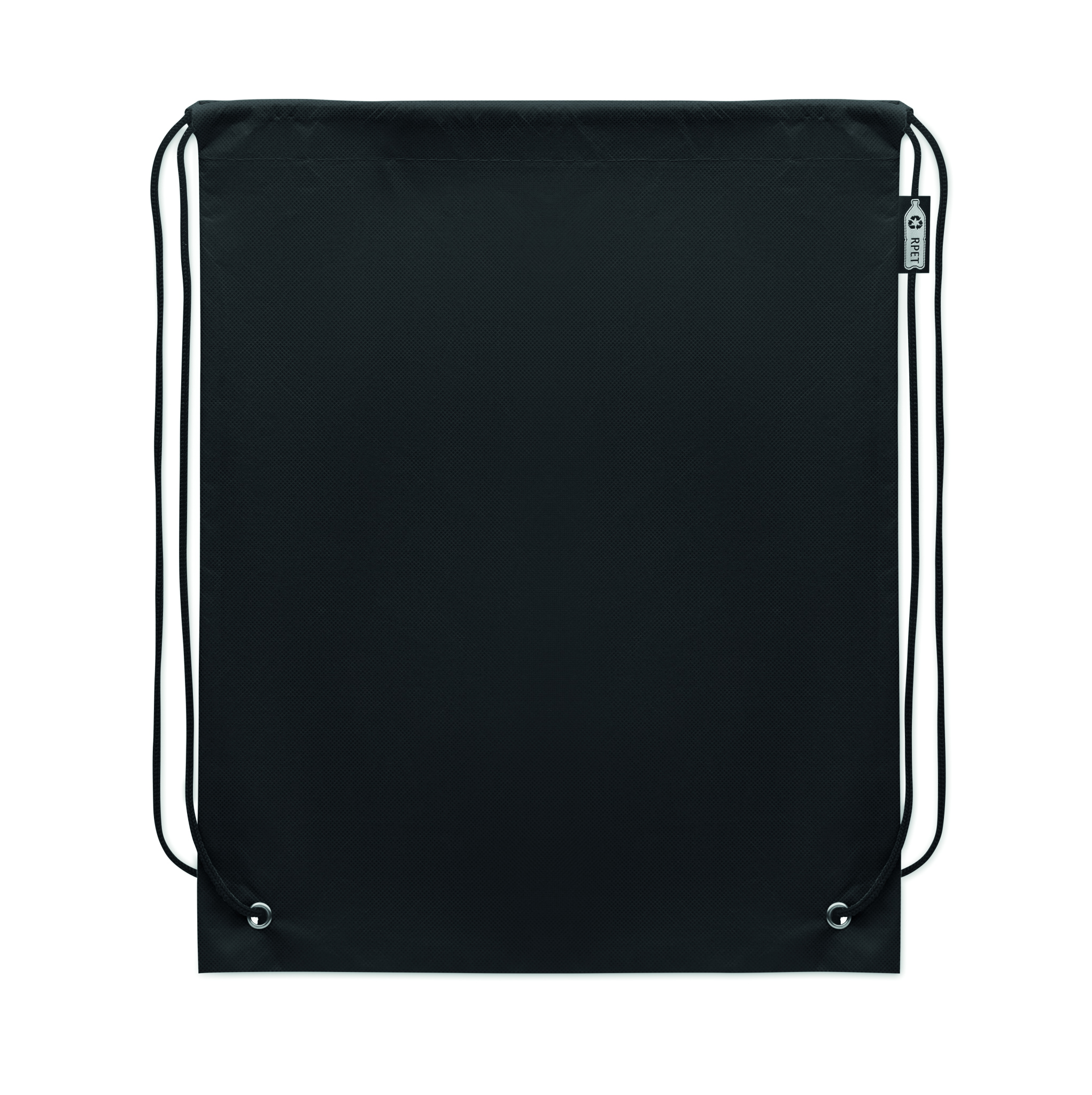 RPET-kuitukankaasta valmistettu narureppu jossa on polyesterinarua. 80 gr/m².