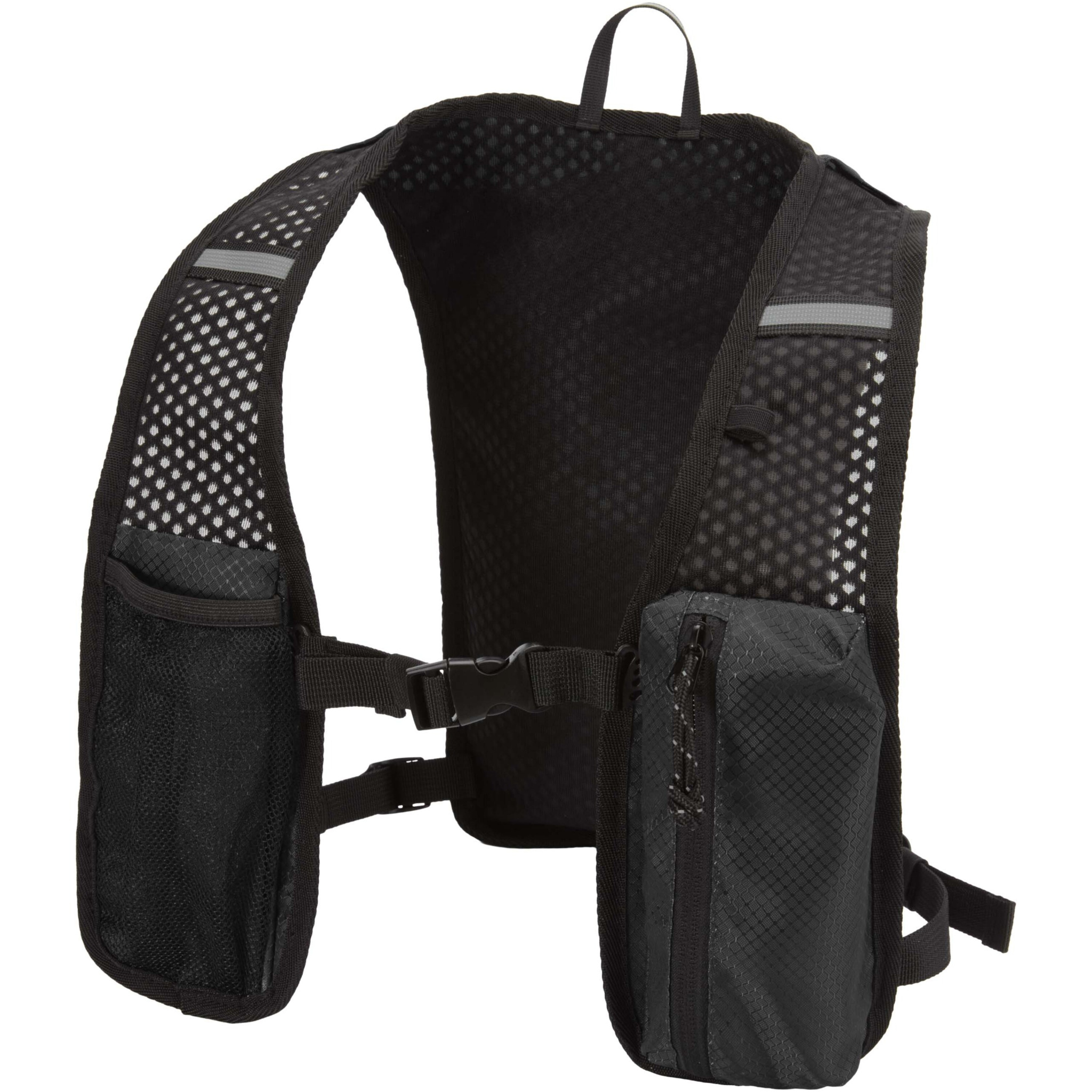 Nomad-juoksunesteytysliivi on valmistettu GRS-sertifioidusta kierrätetystä ripstop-kankaasta, jossa on vettä hylkivä viimeistely. Siinä on GRS-sertifioitu RPET-vuori ja heijastavia elementtejä paremman näkyvyyden takaamiseksi. Tämä reppu on suunniteltu pitkän matkan juoksuun, vaelluskäyttöön ja kevyisiin ulkoiluaktiviteetteihin. Liivin selkäpuolella on hengittävä verkkokangas mukavuuden takaamiseksi. Siinä on säädettävät olkahihnat ja kaksi etutaskua pulloille, pienille tarvikkeille tai matkapuhelimelle. Sisällä on erillinen lokero 1,5 litran nesteytyspussille (ei sisälly toimitukseen). Tilavuus: 5 litraa.