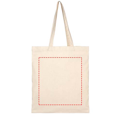 Kierrätetystä puuvillasta ja polyesteristä valmistettu kassi 210 g/m². Kierrätetty puuvilla valmistetaan valmistusmateriaalin ylijäämästä, jota syntyy tekstiilitehtaissa leikkaamisen aikana. Tämä kassi on helppo taitella pieneen tilaan. Täydellinen kumppani erilaisiin aktiviteetteihin, kuten ruokakauppaan, päiväretkille tai käsityöprojekteihin. Varsinaisen tuotteen väri saattaa vaihdella hieman tuotantoprosessin luonteen takia. Kahvojen korkeus ylhäältä mitattuna 31 cm. Kantokyky 5 kg.