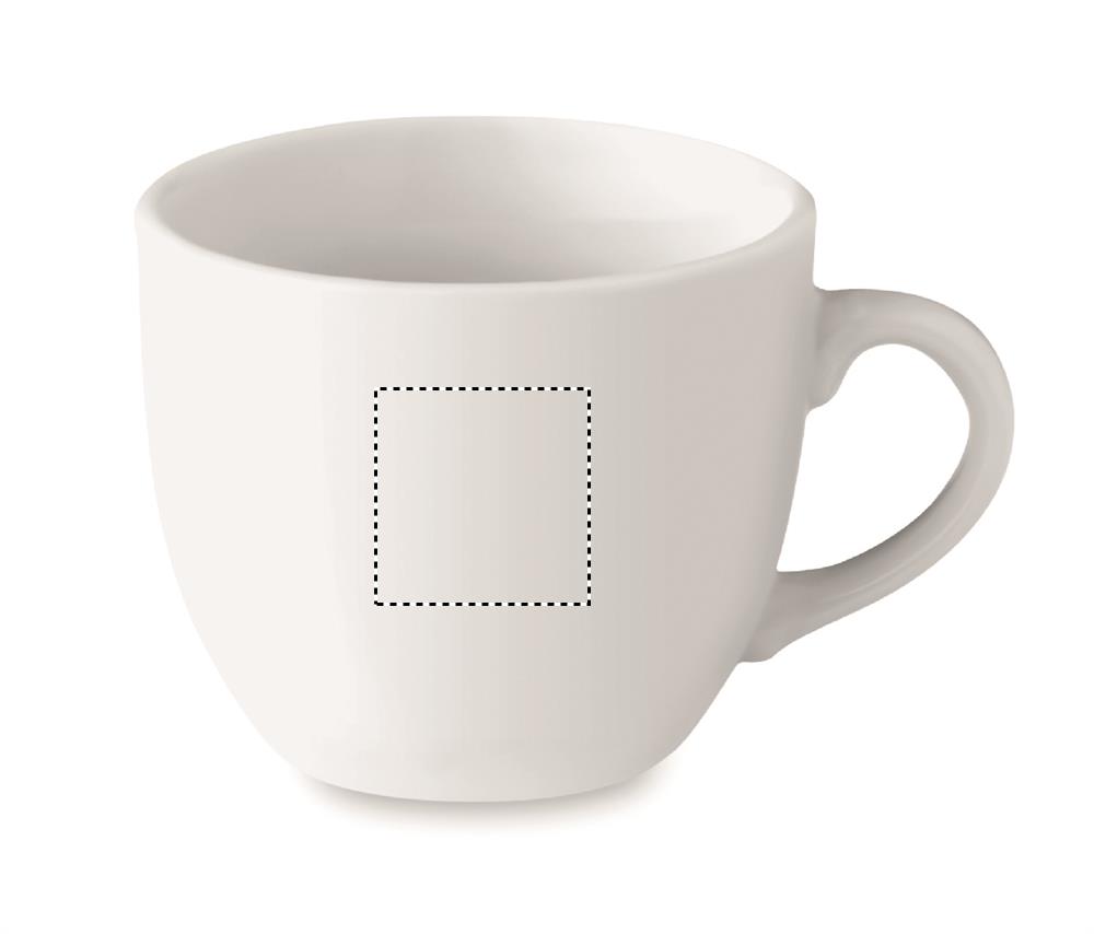 Posliininen 80 ml espressokuppi ja lautanen, bulkkipakkaus. Keraaminen siirtokuva on konepesun kestävä, tampopainatus vain käsinpesun.