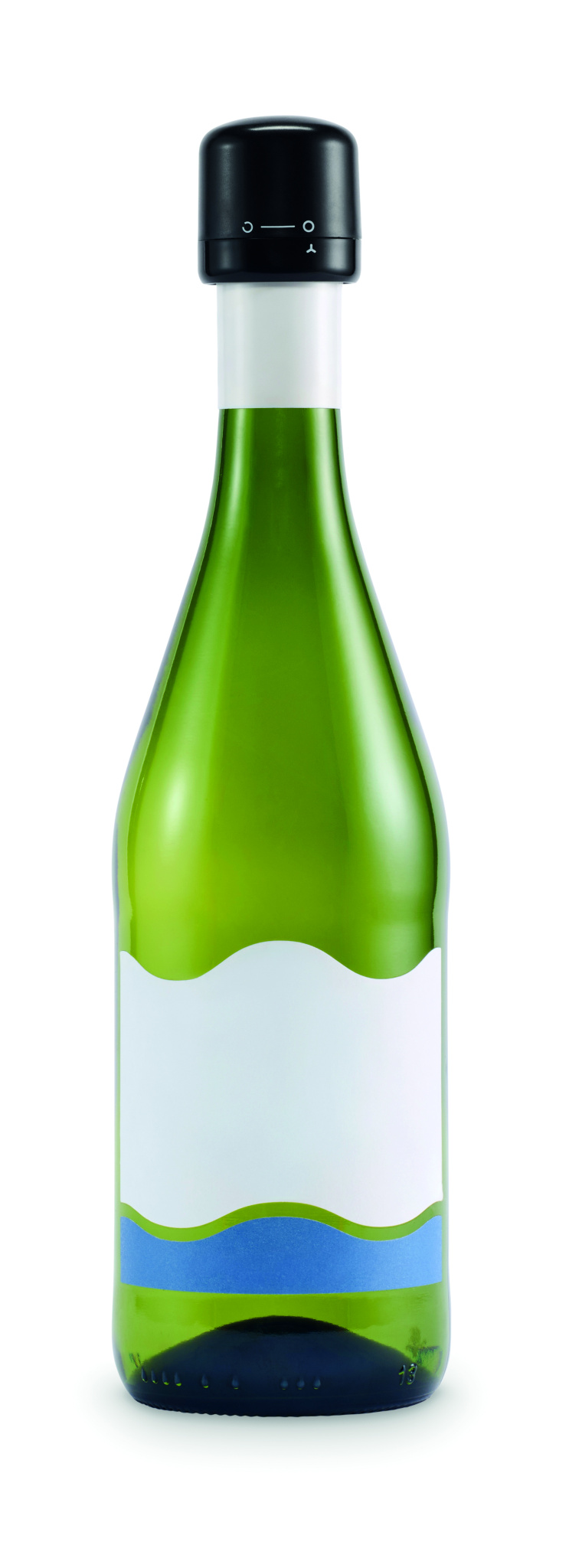 Kierrätetystä ABS-muovista valmistettu pullonkorkki kuohuviinipulloille. Kääntyvällä lukitusmekanismilla ja vuotamattomalla muotoilulla.