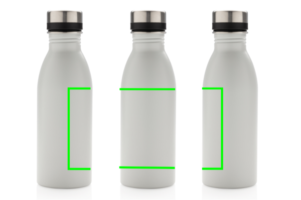 Tämä täydellisenkokoinen ja kevyt, uudelleen käytettävä pullo on valmistettu kestävästä, ruostumattomasta teräksestä. Tiivis ja täydellinen jokapäiväiseen käyttöön nestetasapainon ylläpitämiseksi. Suositellaan vain kylmälle vedelle. Monissa eri väreissä. Luonnonvalkoisen värinen pullo on PMS-värissä Cool Grey 1. Sisältö: 500 ml.
