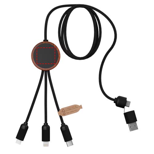Tämä 5-in-1-latauskaapeli valaistuvalla logolla on valmistettu kierrätetystä PET-muovista. Mukana tulee pyöreä bambukotelo. Valaistuva logo näkyy molemmin puolin. Kaapelissa on kolme liitintä (Type-C, Micro-USB, iPhone) ja USB-kaksoisliitin yleiskäyttöön. Toimitetaan TPU-muovipussissa voimapaperikortin kanssa. Johdon pituus: 1 metri. Sisältää kolmen vuoden takuun.