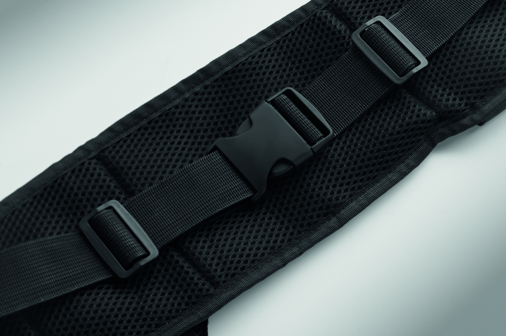 Juoksuun ja retkeilyyn sopiva vyölaukku 420D RPET-polyesterista, hengittävällä verkkoselustalla. Kaksi pullotaskua, keskellä vetoketjutasku ja säädettävä hihna. Kevyt ja kestävä.