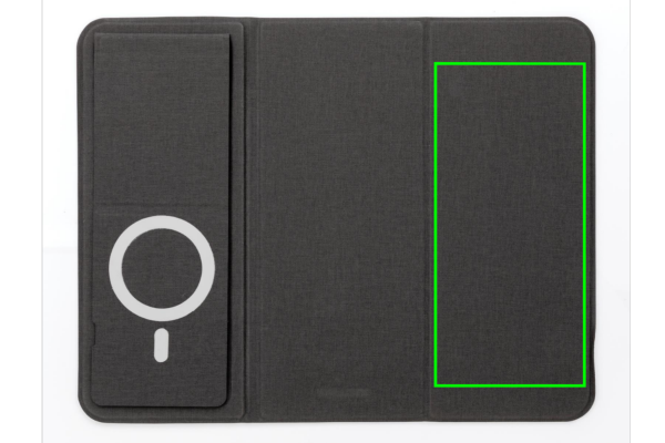 Plakans un salokāms 10 W bezvadu lādētāja peles paliktnis. PU materiāla lādētāju var izmantot gan plakanu, gan kā statīvu. Visu peles paliktni var salocīt, tāpēc to ir viegli paņemt līdzi jebkur. 10 W bezvadu lādētājs ir savietojams ar visām QI ierīcēm (Iphone 8 un jaunākām ierīcēm un Android ierīcēm) Type-C ieeja 9V/2A; Bezvadu izeja 9V/1.1A; C tipa izeja 9V/2A; Ietver PVC nesaturošu TPE uzlādes kabeli. Integrēti 19 gab augstas kvalitātes N52H karstumizturīgi magnēti. Reģistrēts dizains. Ietver 120 cm PVC nesaturošu TPE materiāla C tipa kabeli. Reģistrēts dizains