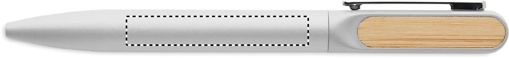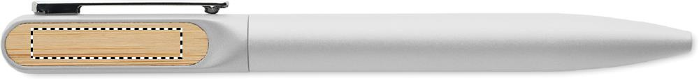 Grozāma lodīšu pildspalva ar pārstrādāta alumīnija korpusu, pārstrādāta ABS vērpšanas daļu un metāla klipsi ar bambusa detaļām. Zila tinte.