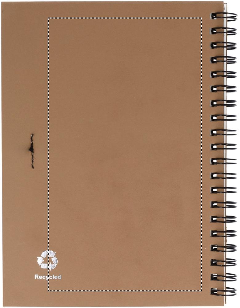 Блокнот с картонной обложкой. Включает 70 страниц вторично переработанной бумаги и синюю шариковую ручку из биопластика.