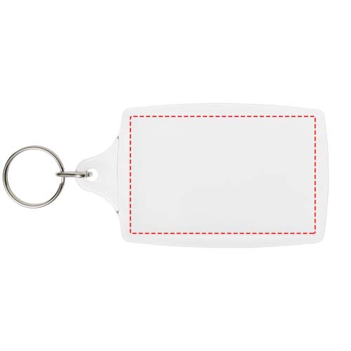 Прозрачный брелок L4 с металлическим разъемным кольцом. Металлическая петля для крепления кольца представляет собой плоский профиль, что делает его идеальным для пересылки. Размеры печатной вставки: 7 см х 4,5 см.