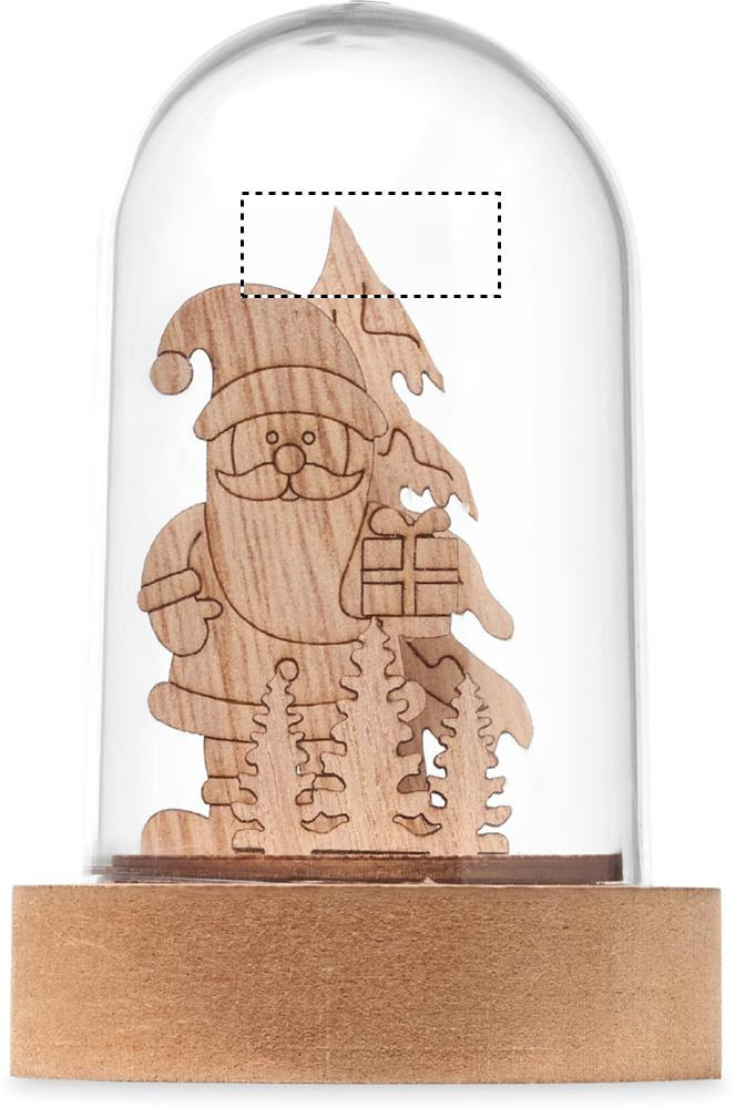 Christmas ornament in MDF and PET case with 1 LED light. Includes 3 cell batteries.