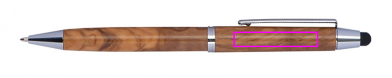 Шариковая ручка из оливкового дерева, с функцией сенсорного ввода и синим стержнем. Ваш логотип будет выгравирован под зажимом.