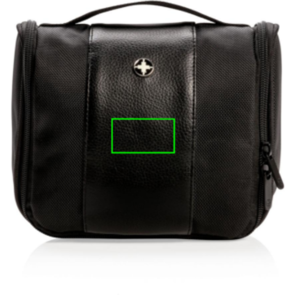 Косметичка из полиэстера 1680D с одним основным отделением и 4 подотделениями + 2 сетчатых открытых кармана, 1 сетчатый карман на молнии внутри. Включает крючок, чтобы повесить косметичку в удобном месте.