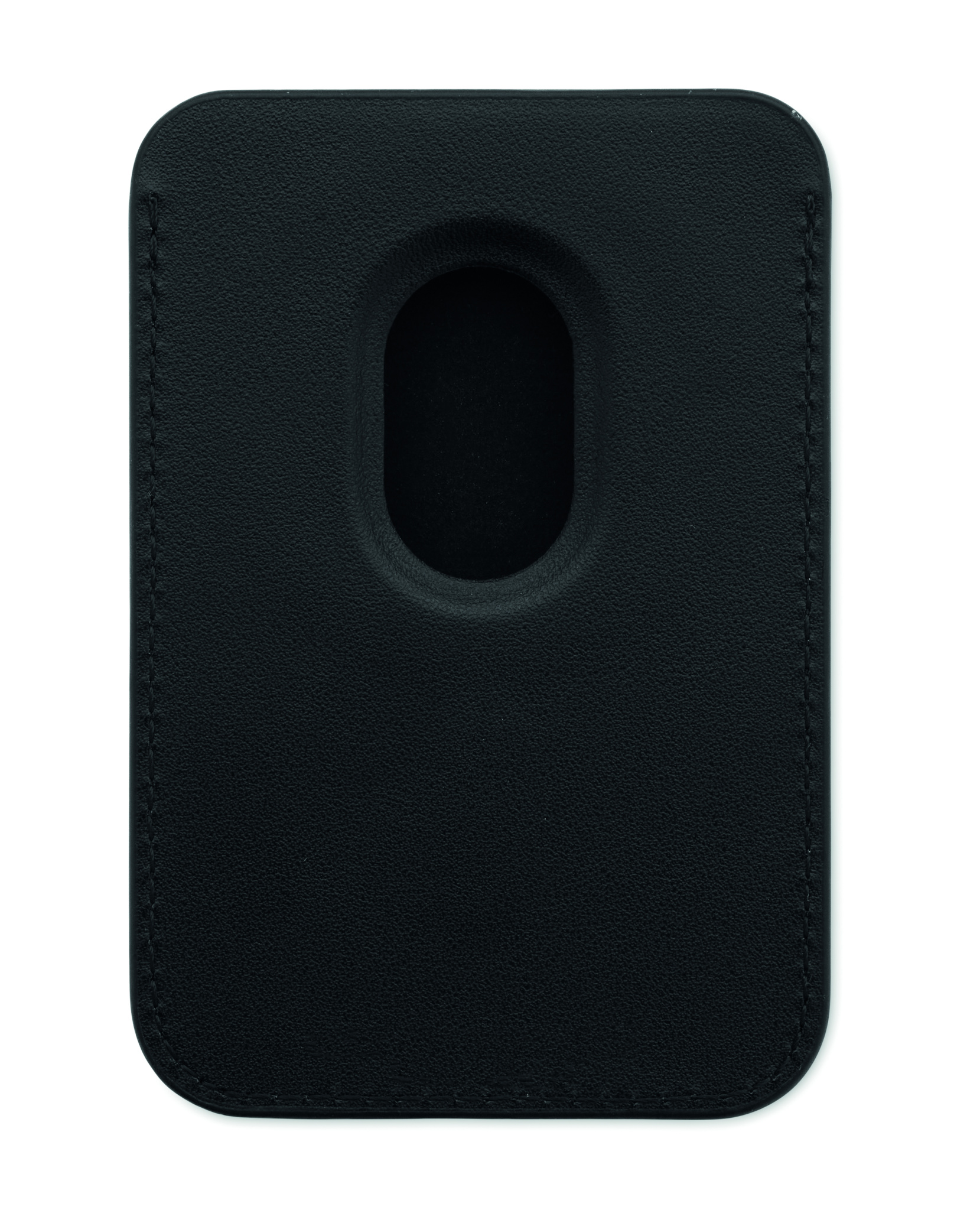 Magnetic PU leather credit card holder (for 3 cards). It includes an additional metal ring.
