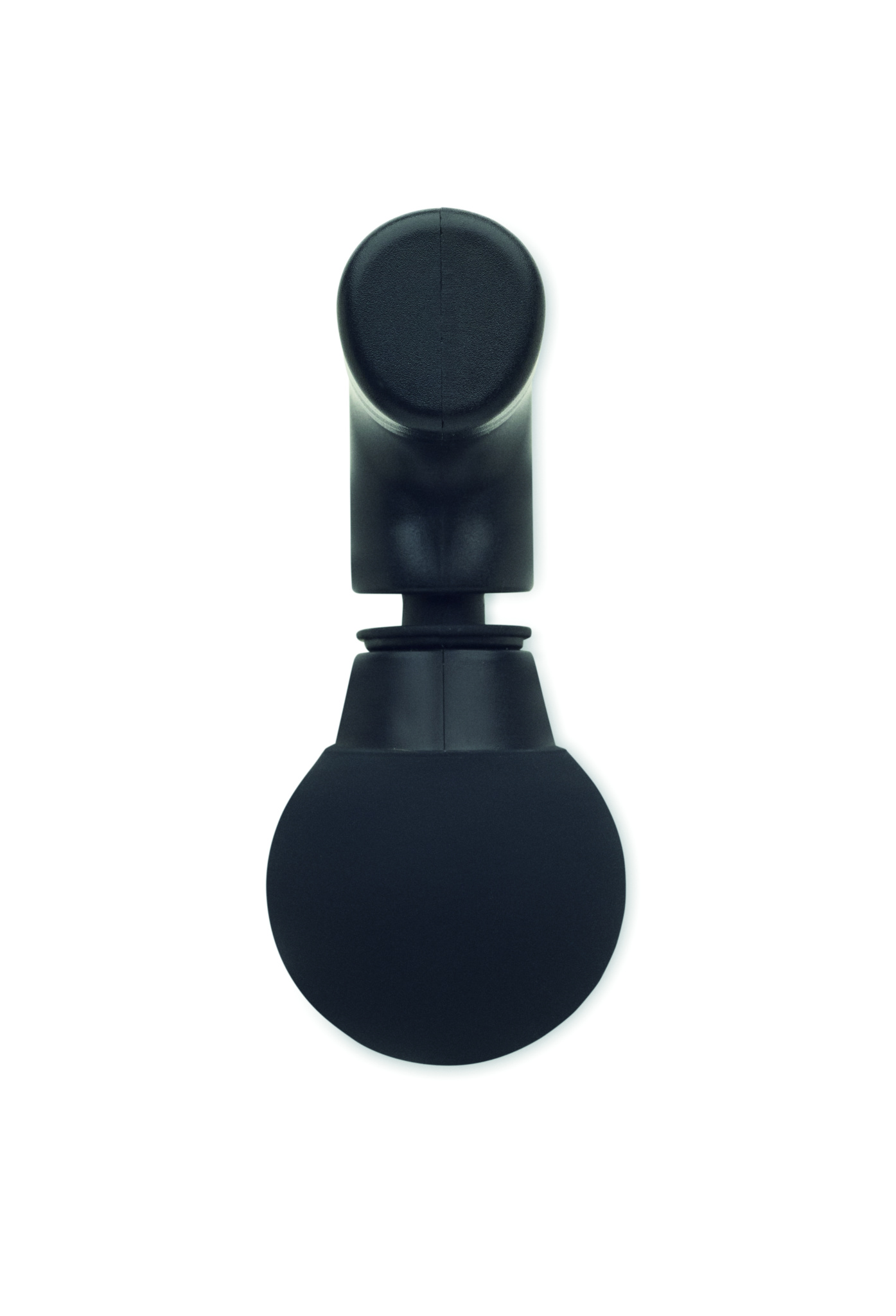 Massage gun with 2 speed level in ABS. Rechargeable 1200mAh battery. Comes with an RPET pouch.