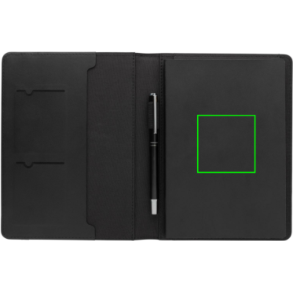 Поднимите свой профессиональный имидж с помощью этого портфеля формата А5, изготовленного из переработанного полиэстера и сертифицированного RCS переработанного полиуретана. Внутри вы найдете 3 отделения для карточек, держатель для ручки и карман для документов формата А5. Организуйте свои дела с помощью блокнота формата А5 с возможностью пополнения, выполненного из кремовой бумаги FSC® и плотностью 80 г/м2. Упакованный в подарочную коробку FSC®, этот портфель легко сочетает в себе стиль и функциональность. Изготовлен из 100% переработанного полиэстера с встроенным маркером AWARE™.