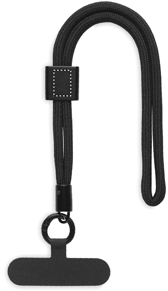 Adjustable phone cord holder wrist strap in RPET polyester. Length 25 cm.
