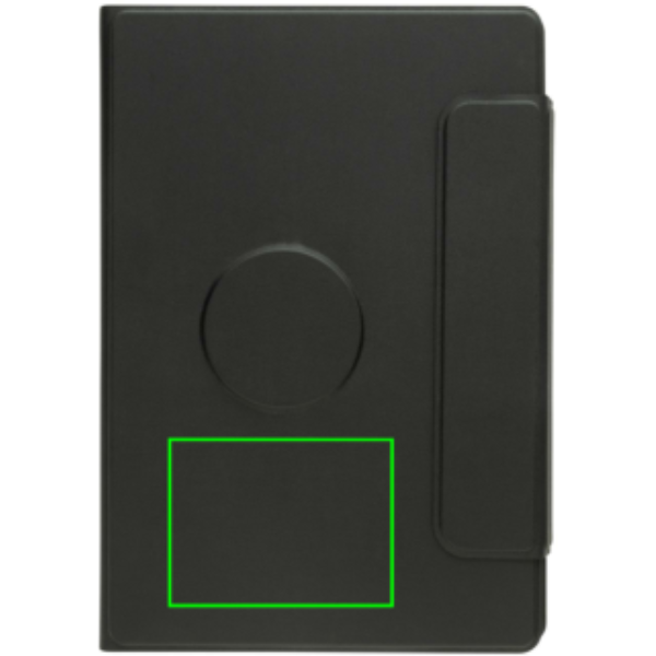 Папка формата А5, переработанный полиэстер PU с магнитной застежкой и магнитным держателем для телефона, совместимым с iPhone 12 или выше с функцией Magsafe, внутри блокнот формата А5 в линейку, внутренние листы сертифицированы FSC® и 64 листа/128 страниц; цвет кремовой бумаги в линейку; плотность бумаги 80 г/м², карман для документов и 2 отделения для визиток. Блокнот можно заполнять.