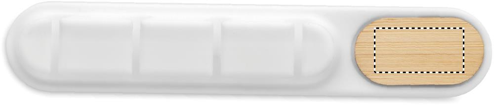 Silicone cable organiser with natural bamboo detail. Compact oval design keeps cables tidy and secure.