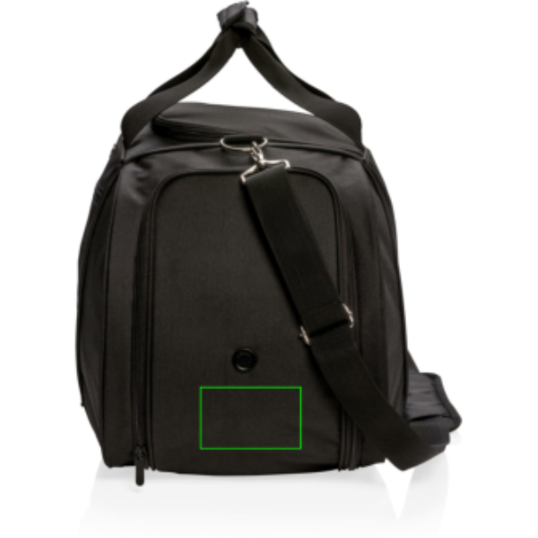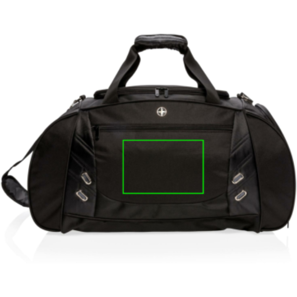 Эта дорожная сумка из полиэстера 600D с 1680D предлагает спортивный стиль для спортзала или обычных путешествий. Включает вместительное основное отделение с U-образной верхней застежкой-молнией, боковое отделение для обуви с вентиляционным отверстием и боковое отделение для бутылок. Передний карман на молнии для быстрого хранения смартфонов и других дорожных принадлежностей. Регулируемый плечевой ремень и двойные верхние ручки для удобства и универсальности переноски. Не содержит ПВХ.