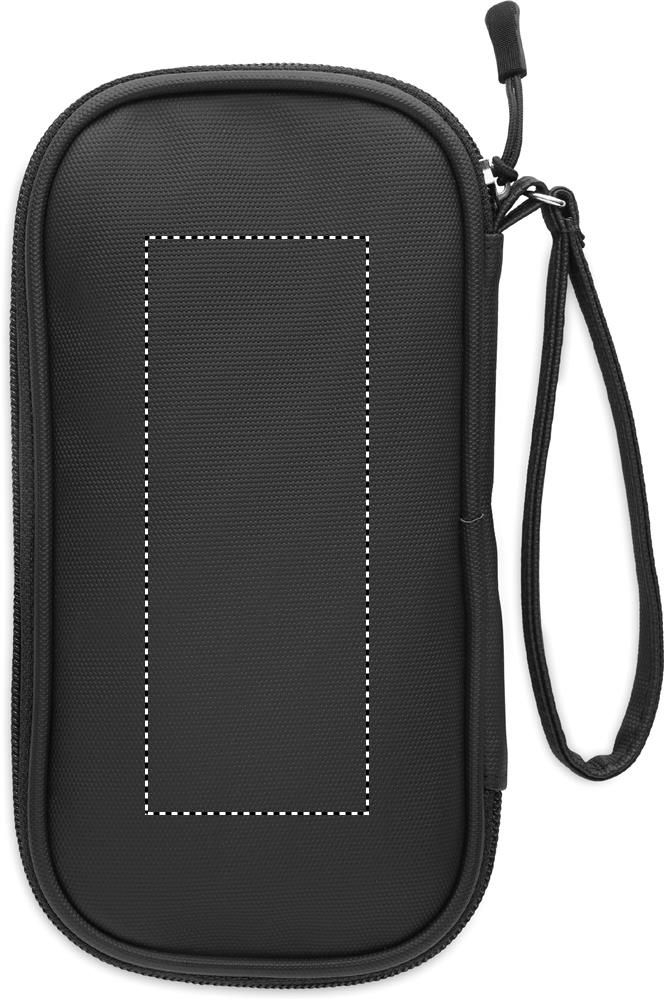 Tech organizer pouch in 600D RPET polyester with PU coating.