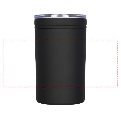 Двойные стенки с вакуумной изоляцией. Прозрачная крышкой с кнопкой и открывающимся отверстием для питья. Стакан-термос. Объем – 330 мл.