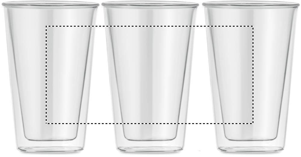 350ml Take away mugg i Borosilikat glas med dubbelvägg och silicon lock. Borosilikatglas är en typ av glas som inte kommer att spricka under extrema temperaturförändringar som vanligt glas. Tack vare detta har borosilikatglas förmågan att gå direkt från en frys till ugn och har därför gjort det till valet för avancerade restauranger, laboratorier m.m. För dig betyder det att du kan hälla varmt vatten, te eller kaffe utan att oroa dig. Tål maskindisk. Trycket på produkten är inte diskmaskinssäkert.