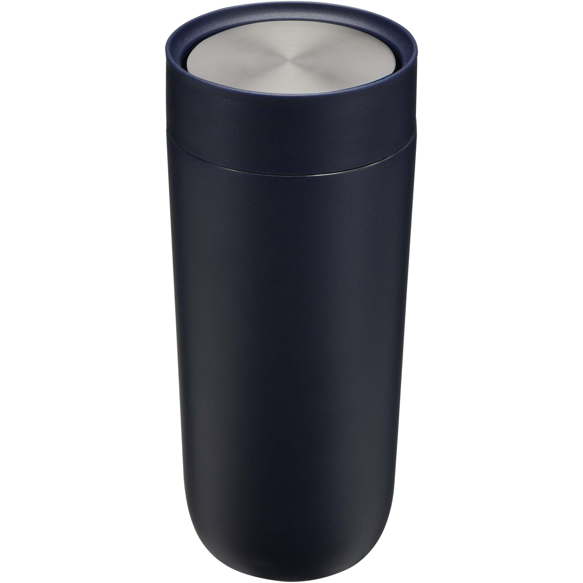 Förstklassig termos för användning när du är på språng med en praktisk öppningsmekanism i rostfritt stål som gör det möjligt att öppna den med en hand. RCS-certifierad stomme i rostfritt stål med slitstark ytbeläggning. Locket är tillverkat av RCS-certifierat rostfritt stål och PP-plast. Kopparplätering och keramisk beklädnad. Passar de flesta vanliga bilmugghållare. Håller dryckerna varma i tolv timmar eller kalla i 24 timmar. Levereras i en presentförpackning av återvunnen kartong. Volymkapacitet: 350 ml.