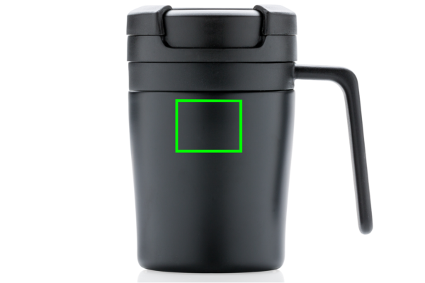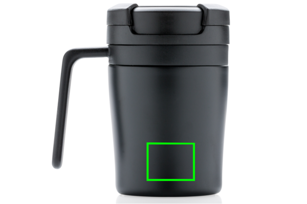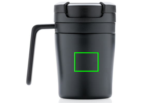 Less is more. Dubbelväggig mugg med handtag, perfekt för kaffemaskinen då den endast är 8 cm hög. Perfekt storlek för 1 enkel kopp kaffe eller en Espresso. Endast handdisk. PP insida. Spillsäkert skruvlock. Volym 160 ml. Registrerad design®