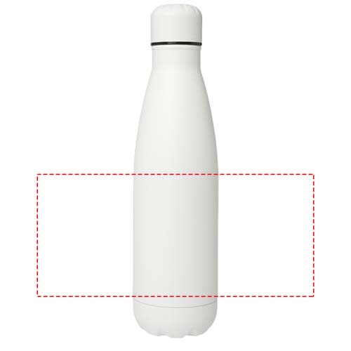 Vakuumisolerad flaska av rostfritt stål med en ikonisk design. Det isolerade 18/8 rostfria stålet håller drycker varma eller kalla i flera timmar. Testad och godkänd enligt tysk lagstiftning om livsmedelssäkerhet (LFGB) och testad för ftalatinnehåll enligt REACH-förordningarna. Med en bas som passar i de flesta mugghållare är den här snygga vattenflaskan en perfekt reklamartikel. Volymkapacitet 500 ml. Levereras i en återvunnen presentförpackning av kartong.