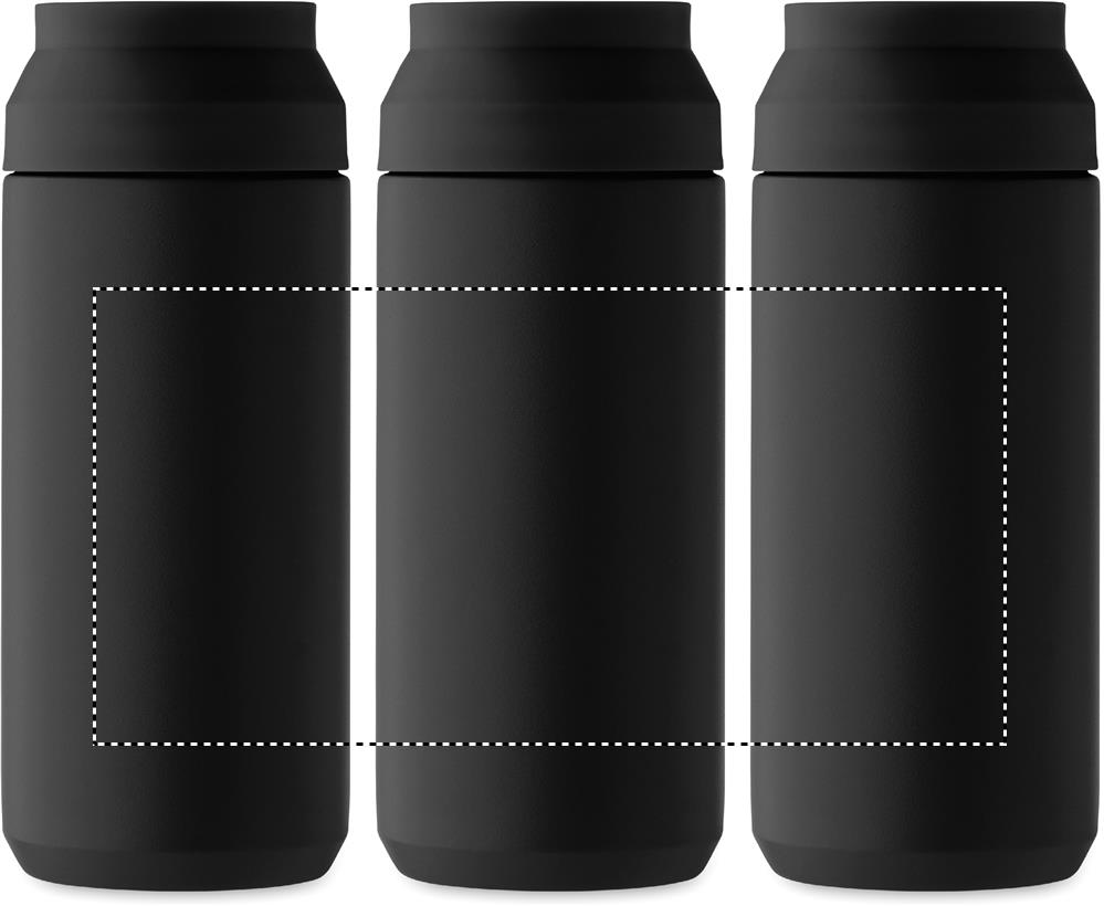 Dubbelväggig vakuumflaska i återvunnet rostfritt stål (90 % återvunnet rostfritt stål och 10 % rostfritt stål) med lock i återvunnen PP med dubbla öppningar för enkel rengöring. Läckagefri. Volym: 320 ml.