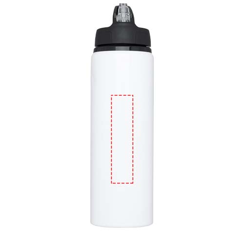 Aluminiumflaska med enkelvägg med skruva-på lock med en uppfällbar pip för att dricka. Locket har ett handtag för att lätt kunna tas med. BPA-fri. Volymkapacitet 800 ml.