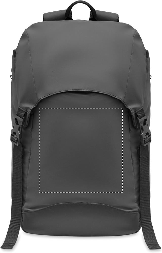 Gympapåse i lätt relekterande 190T polyester. Matrialet har en metallic liknande effekt. Sidoficka med dragkedja på utsidan och vadderad rygg, innerfoder med dragsko. Ett stort vadderat innerfack för bärbar dator. Den har justerbar vadderad ryggrem och justerbar bröst- och midjerem med spänneförslutning. Både övre som låg spänne bröst- och midjebälte. Vattenavvisande.