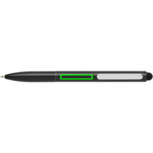 Kymi RCS-certifierad penna i återvunnen aluminium. Pennan kombinerar stil och funktionalitet, med vridmekanism och blått bläck. Skrivbredd 1 mm, skrivlängd 700 meter. Med touchfunktion. Totalt återvunnet innehåll: 27% baserat på total produktvikt.