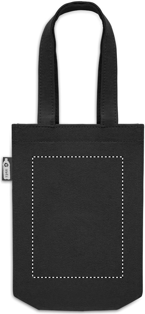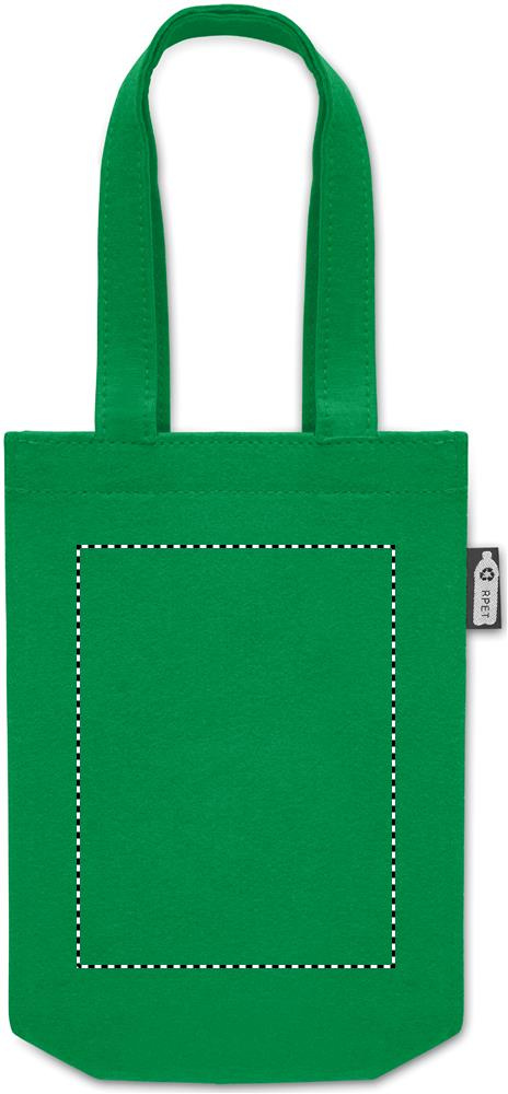Liten present- eller goodiebag i RPET-filt med korta handtag och kil i botten. Filtens tjocklek: 1 mm.