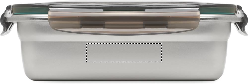 Lunchlåda i återvunnet rostfritt stål med återvunnet PP-lock och 4 spännen, ett på varje sida. Volym: 850 ml.