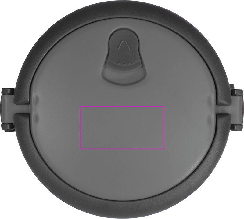 Perfekt till lunch, box i rostfritt stål med två fack och bärhandtag i plast. Vi trycker din logotyp på locket.
