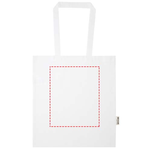 Tygväskan Peru Blend är tillverkad av 60 % GRS-certifierad återvunnen bomull och 40 % GRS-certifierad RPET med en tygdensitet på 180 g/m² och är stark och hållbar för daglig användning. Den har ett stort huvudfack som ger maximal synlighet för alla logotyper, medan det robusta materialet gör den lämplig för att bära tyngre föremål (upp till 5 kg). De 30 cm långa axelremmarna gör den bekvämt att bära. De tryckmetoder som är tillgängliga för den här tygkassen är också GRS-certifierade, vilket garanterar en transparent och helt certifierad leveranskedja.