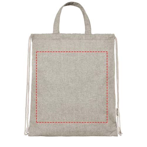 Ryggsäck med dragsko tillverkad av en 150 g/m² återvunnen bomulls- och polyesterblandning. Stort huvudfack med bomullsdragsko i naturlig färg. Återvunnen bomull är tillverkad av konsumentavfall som genereras av textilfabriker under skärprocessen. Liknande färger blandas ihop, så ingen ytterligare färgning krävs. Eftersom bomullen är återvunnen kan det förekomma en mindre färgvariation. Detta bidrar tydligt till ett mer autentiskt utseende. Alla ryggsäckar levereras också med en Aware™-spårare. Denna innovativa funktion gör det möjligt för användare att spåra varans ursprung och resa via en QR-kod, vilket ökar transparensen i leveranskedjan och bidrar till en starkare koppling mellan produkten och dess produktionsprocess. Klarar upp till 5 kg vikt. Handtagets längd: 14 cm.