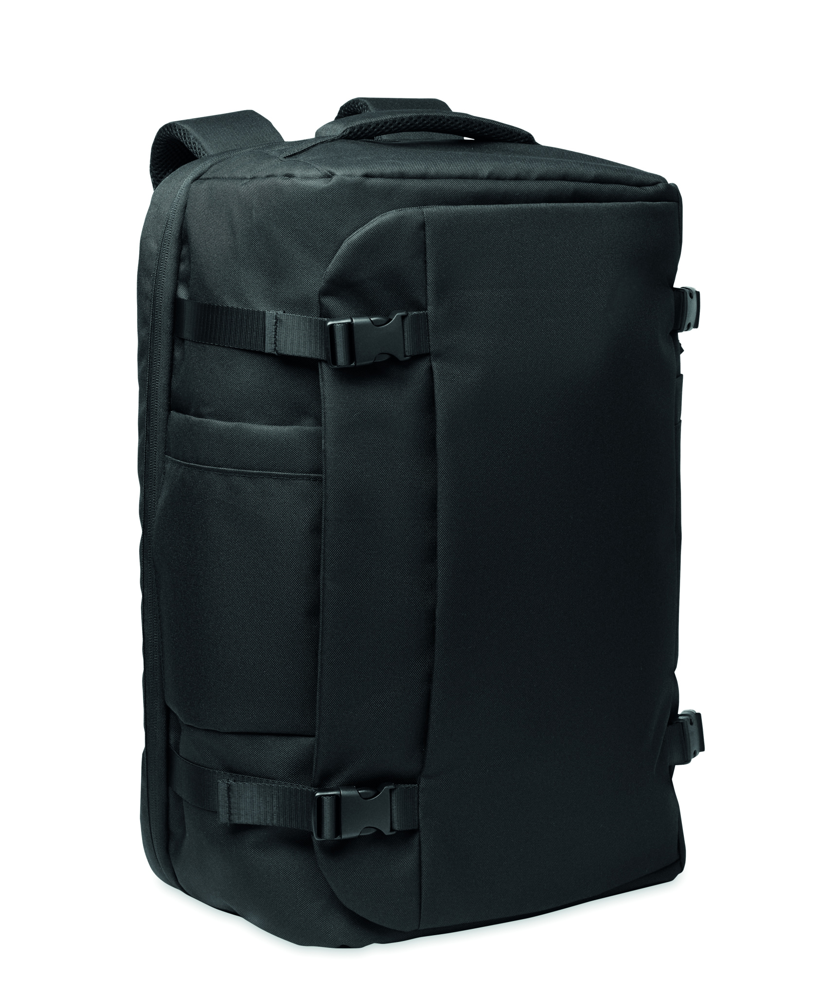 Stor 17-tums dataryggsäck för laptop i 600D RPET polyester. Har flera fack som ett huvudfack för kläder, två vadderade fack för laptop och surfplatta med mera. Vadderad ryggpanel, axelrem och handtag.