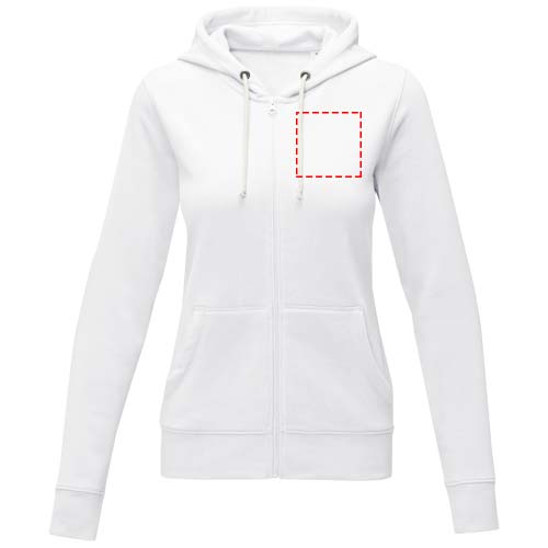 Theron huvtröja med hel dragkedja för DAMER - där stil möter komfort i perfekt harmoni. Den här huvtröjan är en sann förkroppsligande av klassisk design. Dessutom finns det möjlighet att göra personliga märkningar eller anpassningar på insidan av huvtröjan. En känguruficka kombinerar bekvämlighet med modern estetik. Den plattstickade ribbade nederkanten och muddarna garanterar en säker passform medan den borstade insidan maximerar mjukheten. Tyget på 240 g/m², en blandning av bomull och polyester, lovar värme och hållbarhet. Lyft din garderob med Theron-hoodien med hel dragkedja. Den här huvtröjan är designad med en figurnära passform för en feminin look.