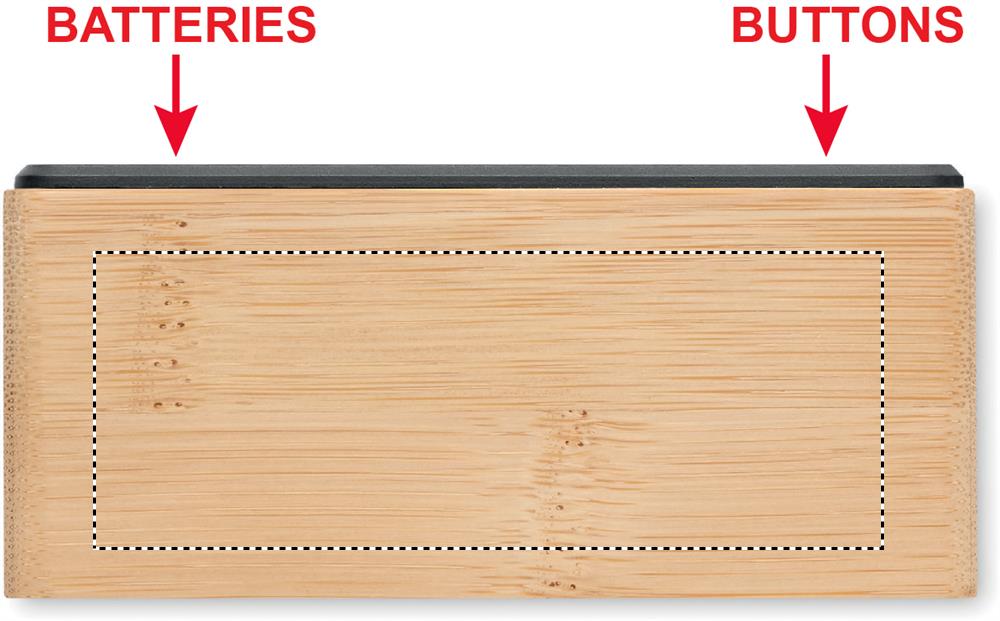 Väckarklocka i bambu med vit LED tid- och temperaturvisning. AC-DC adapter ingår. Bambu är en naturligt material och det kan finnas små variationer i färg och storlek, vilket kan påverka märkningen.